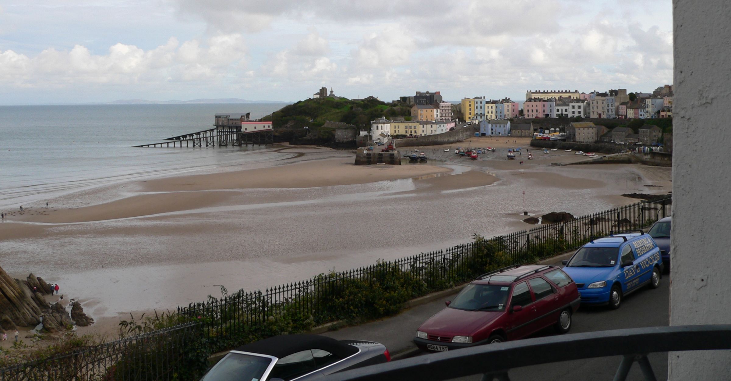 View from the window of our flat. The tide is out, hence the boats are sitting on the sand in the empty harbour!