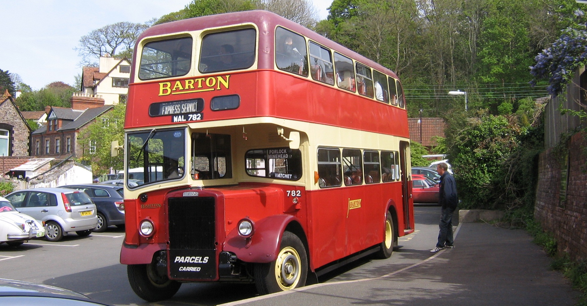 Barton 1947 Leyland PS1 with 1957 Willowbrook body, seen in Porlock.