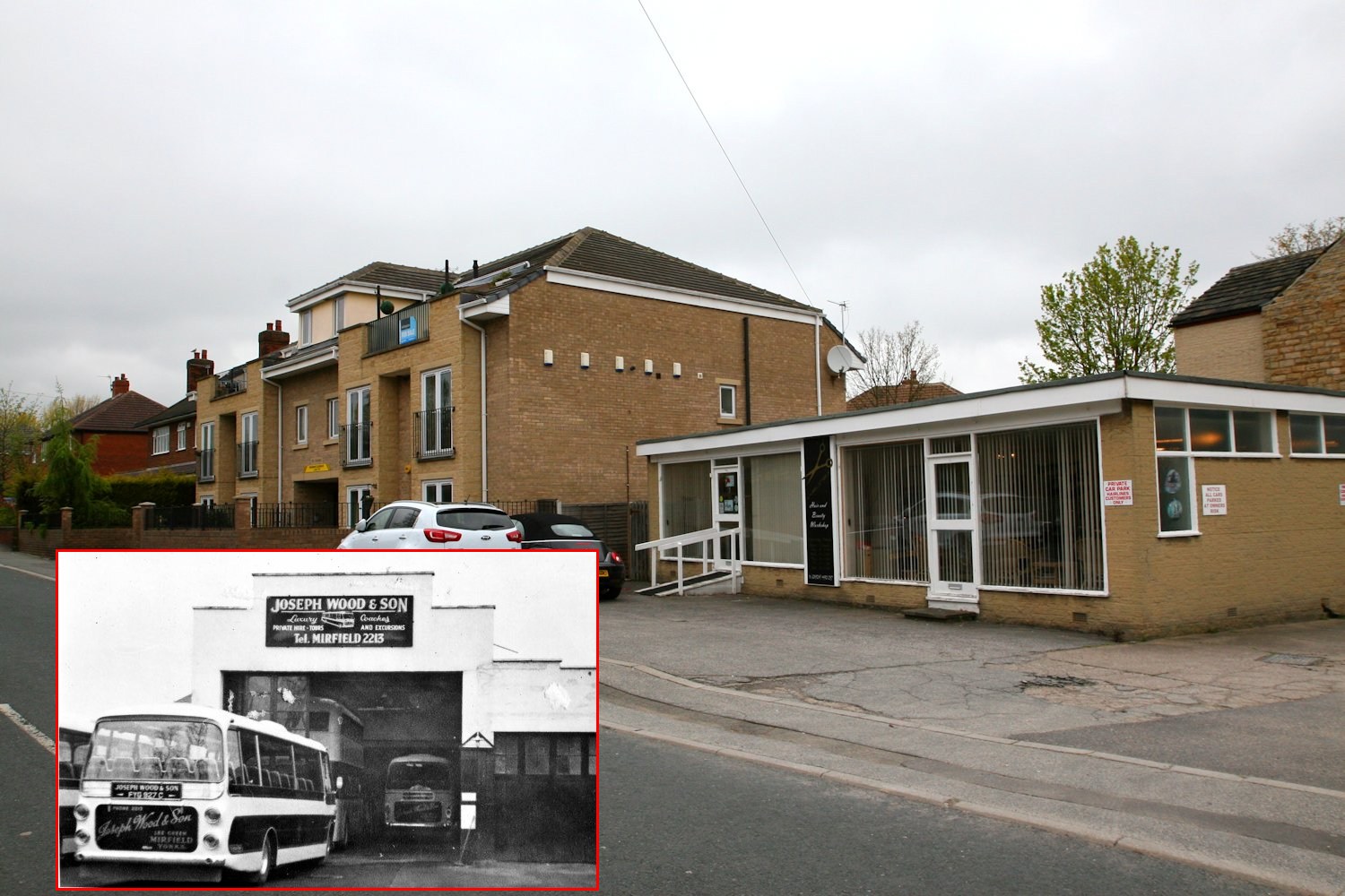 The site of the former bus depot of J Wood & Son (inset) on Lea Green.