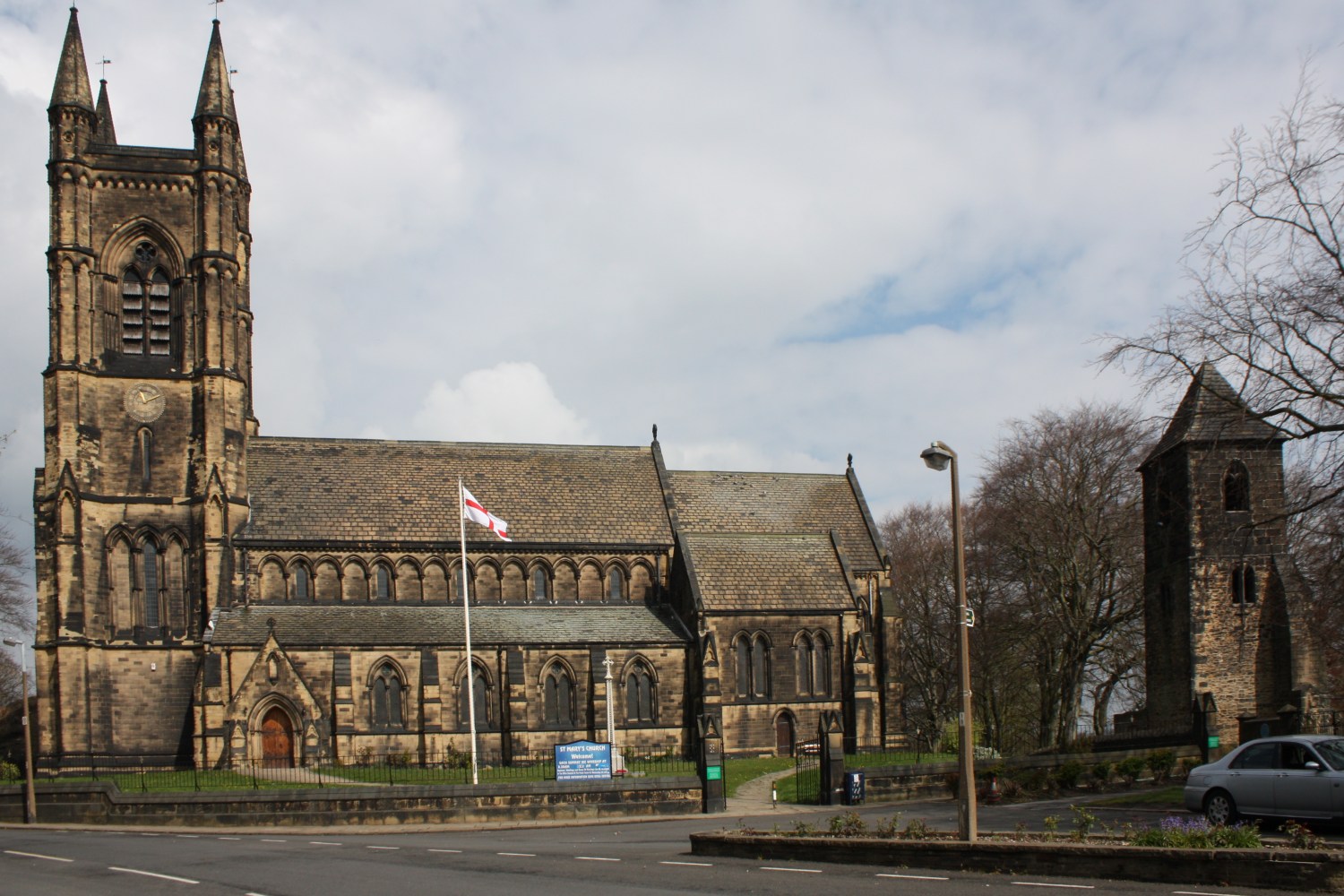 Mirfield Parish Church (St Mary’s). The tower on the right has survived from the original church built in 1261.