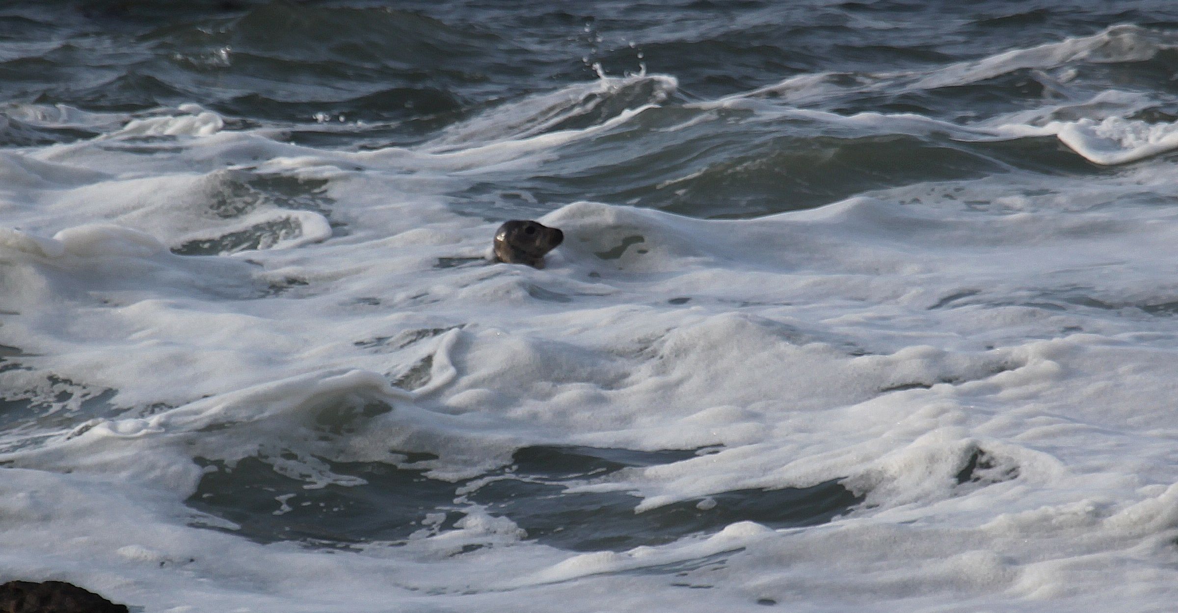 8. Thanks to our unwanted guests, the seals were not basking, but were in the water.  What is not obvious here is that this seal is staring straight at the two people who were intruding into his space.