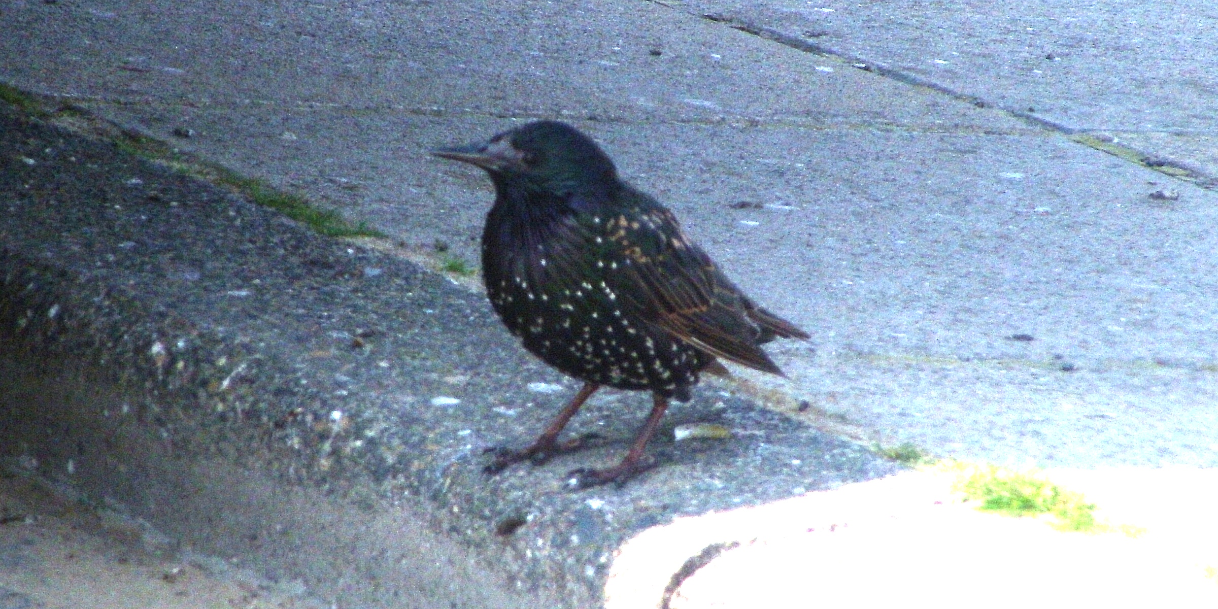 A baby Starling in the car park at Redcar. Not a particularly good photo because it is in the dark shade under the bumper of the car parked next to us.