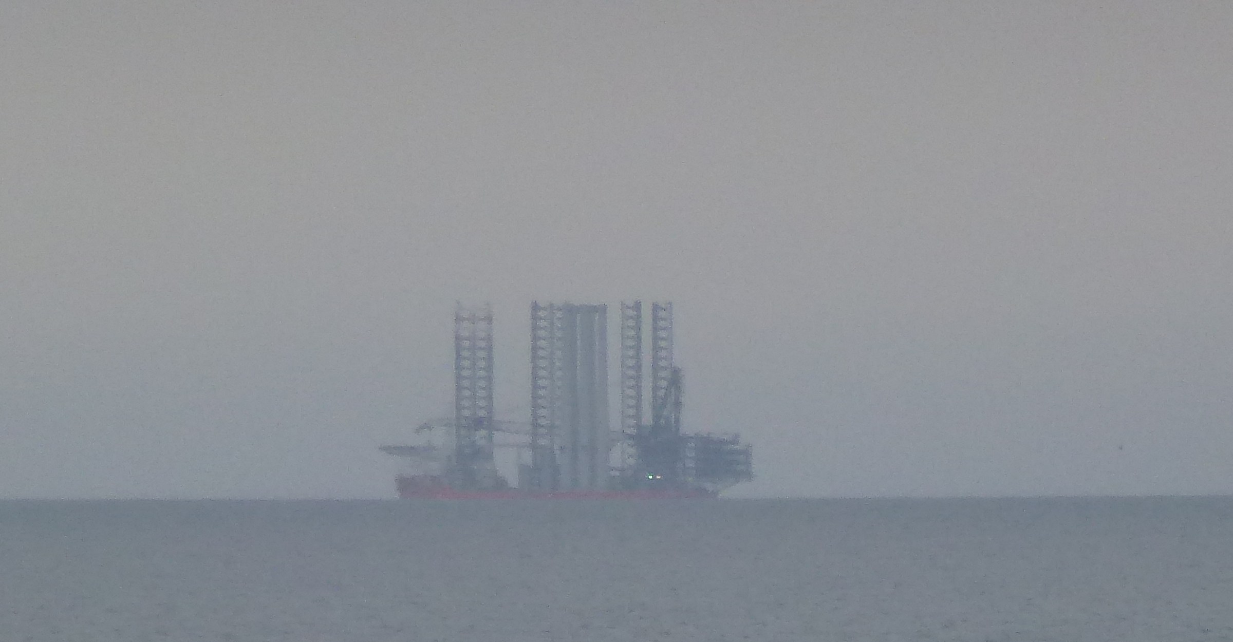 Thursday, and an evening visit to the beach, where this contraption was a long way away on the horizon. Unfortunately I only had my compact camera with me, not the XLR with the telephoto lens, so this is the best picture I could manage. I presume it is something to do with the oil / gas drilling industry. |